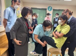 寒くなった時期だからこそ、消防訓練を実施しました。 夜間、職員が少ない中でも迅速に避難できるように消防設備業者の方に指導を受けながら、5名1組でチームを作り、搬送訓練を行いました。 暗中通過訓練で煙の中を実際に避難、煙の中だと自然に姿勢が低くなるものですね! (3名いますが、写真ではわかりにくいかな?) 投稿ナビゲーション クリスマス会!入浴機器を新規購入!