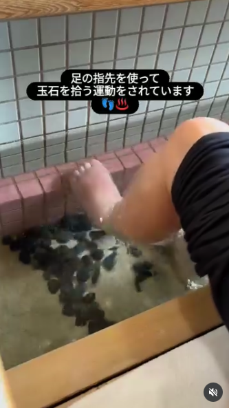 動画は利用者様のI様が利用されている様子です。足の指で、お湯の中の玉石を取り、足指先の運動をされています。